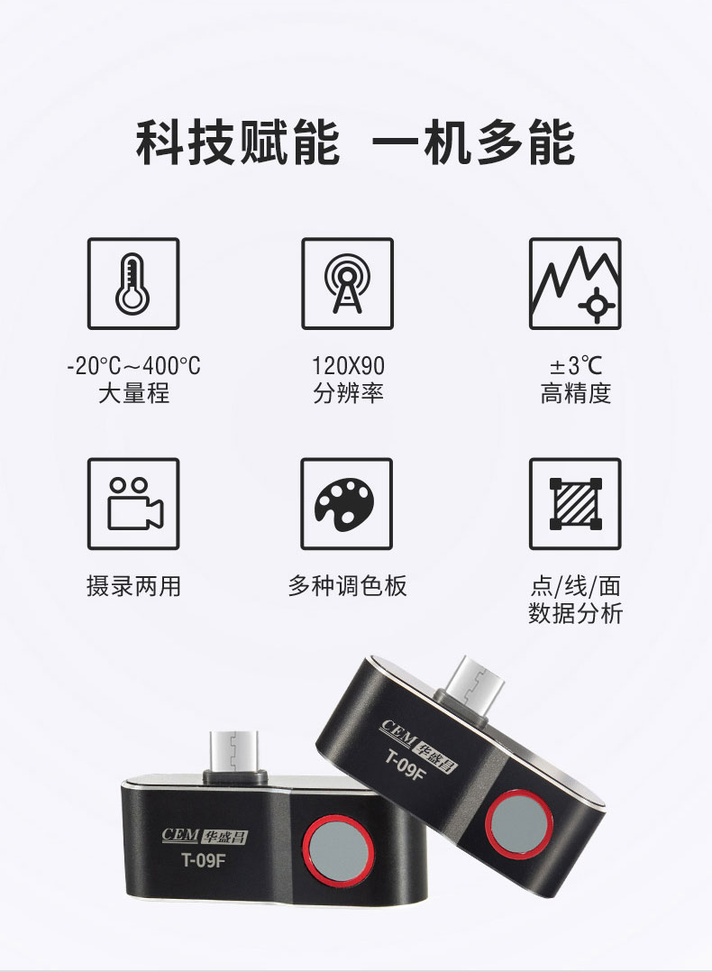 移動(dòng)互聯(lián)即插即用 手機(jī)互聯(lián)型紅外熱成像儀 T-09F