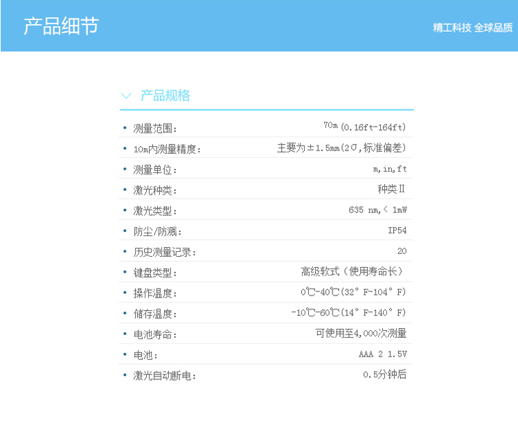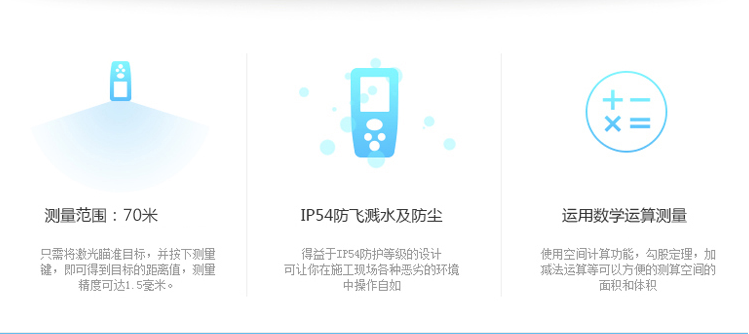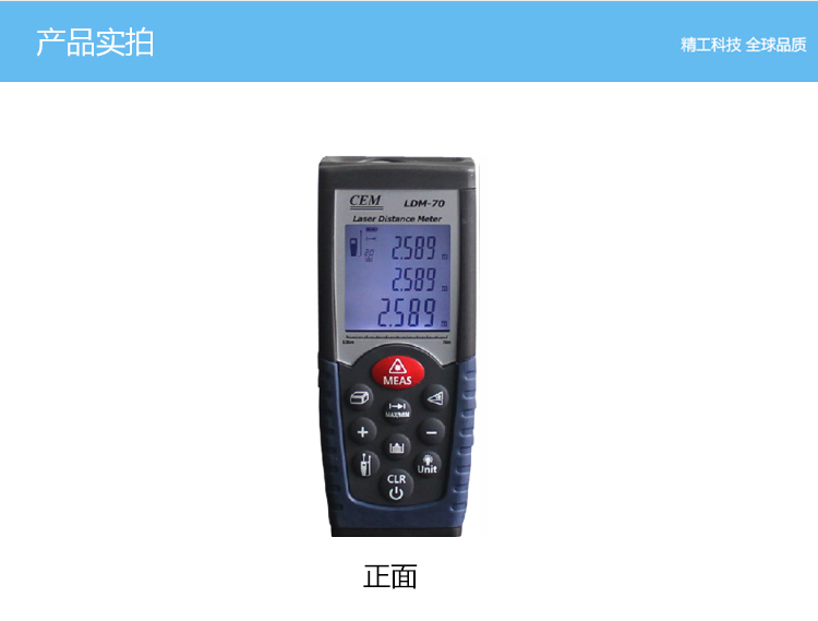 LDM-70為CEM自主設(shè)計、研發(fā)和制造的工業(yè)級遠距離手持式激光測距儀,使用簡單安全,僅需單人操作無需借助其他工具,即使在非??量痰臏y量環(huán)境中也能輕松應(yīng)對。65米/70米能滿足更多工業(yè)與建筑行業(yè)的需求。 1、面積體積的計算功能; 2、運用勾股定理間接測量; 3、加減功能; 4、連續(xù)測量功能; 5、最大與最小距離跟蹤; 6、背光顯示與多行顯示; 7、蜂鳴提示; 8、精度±1.5mm; 9、外觀小巧,雙注塑防滑軟膠超舒適手感。