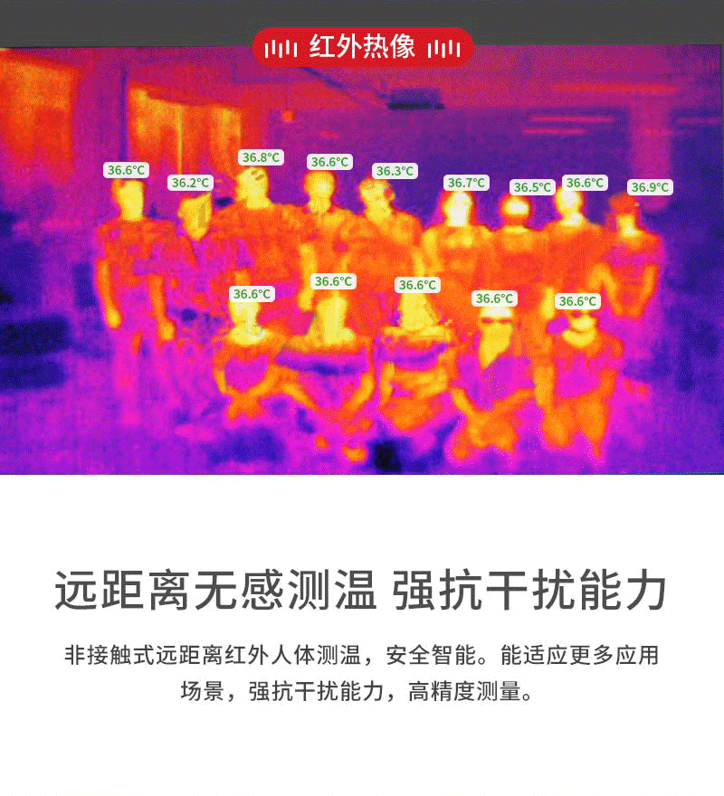熱成像篩查原理1.紅外輻射原理 自然界中一切溫度高于絕對(duì)零度(負(fù)273.15攝氏度)的物體都會(huì)輻射紅外能量,熱成像儀只是被動(dòng)接受人體輻射出來(lái)的紅外能量,對(duì)人體和環(huán)境是沒(méi)有任何危害的。 2.紅外熱成像儀原理 紅外熱像儀將紅外熱輻射轉(zhuǎn)換成電信號(hào),經(jīng)過(guò)系統(tǒng)電路的處理,在顯示器上通過(guò)肉眼可見(jiàn)的RGB顏色顯示出來(lái),實(shí)質(zhì)上是將不可見(jiàn)的紅外輻射轉(zhuǎn)換為可見(jiàn)的熱圖像,并配以溫度顯示。 3.熱成像篩查的優(yōu)勢(shì)與注意事項(xiàng) 熱成像可以對(duì)其視場(chǎng)角范圍內(nèi)的多目標(biāo)同時(shí)進(jìn)行體溫測(cè)量,減少人員接觸,安全效率高,但它的精度受到外界環(huán)境影響,所以應(yīng)用時(shí)應(yīng)該保持環(huán)境穩(wěn)定。 4.人體溫度篩查原理 篩查系統(tǒng)首先通過(guò)人臉檢測(cè)技術(shù),獲取人臉的區(qū)域。然后通過(guò)熱成像獲取人臉區(qū)域額頭溫度。這樣可以將人臉和溫度關(guān)聯(lián)起來(lái)。 需要注意的是: 1)人的體內(nèi)溫度通常在35°℃~37°C范圍內(nèi)波動(dòng),受到環(huán)境,運(yùn)動(dòng)狀態(tài)等影響會(huì)出現(xiàn)體溫的波動(dòng),需要被測(cè)人員處于穩(wěn)定的環(huán)境中,避免劇烈運(yùn)動(dòng)。 2)由于是采集人臉額頭,所以被測(cè)人員不要遮擋額頭,戴口罩不影響測(cè)量。