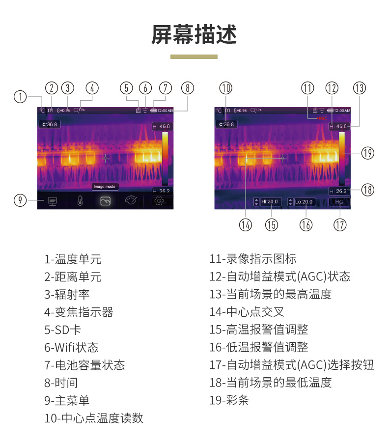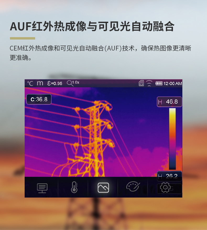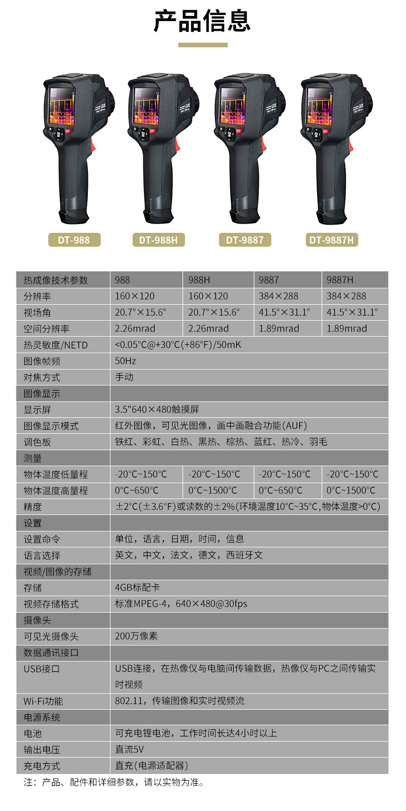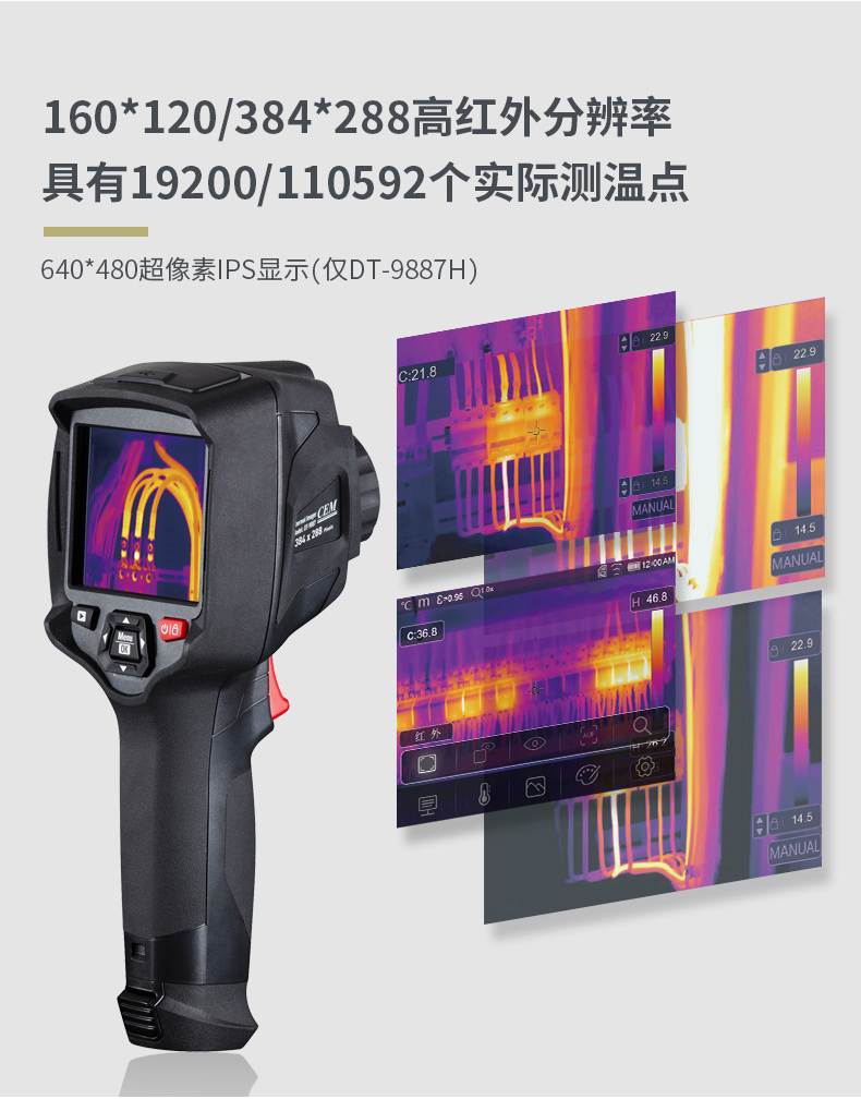 標(biāo)配鏡頭22mm,分辨率324×288,IFOV:1.14mard,視場角24.5×18.6°,熱靈敏度NETD<0.06℃,圖像幀頻50Hz,溫度范圍(-20-150、0-400),可見光分辨率640×480像素