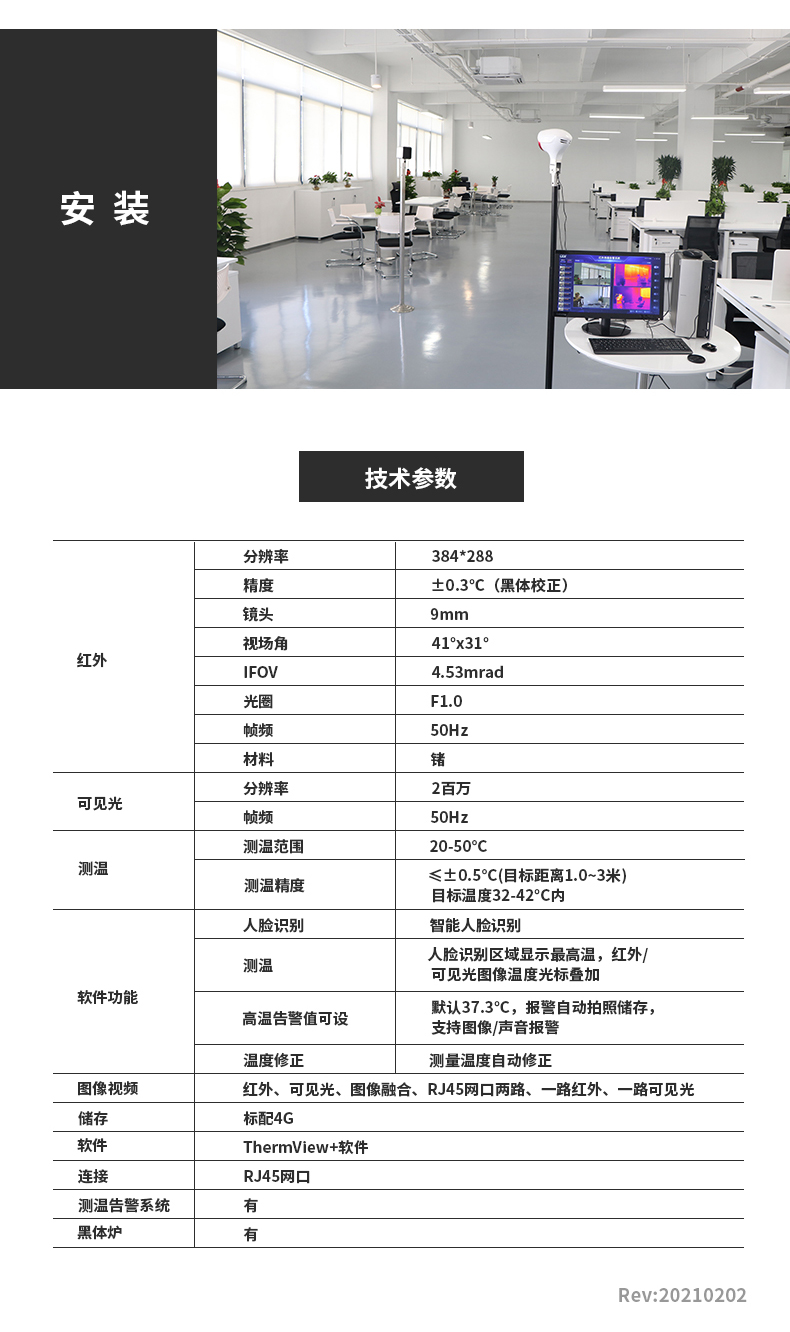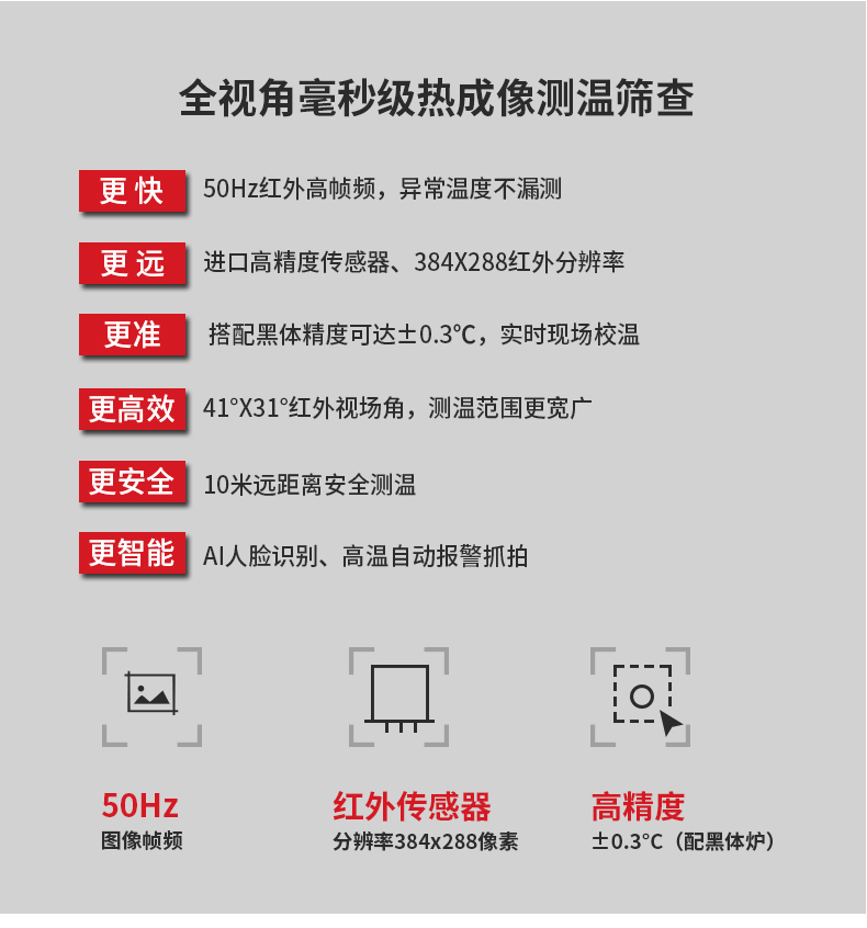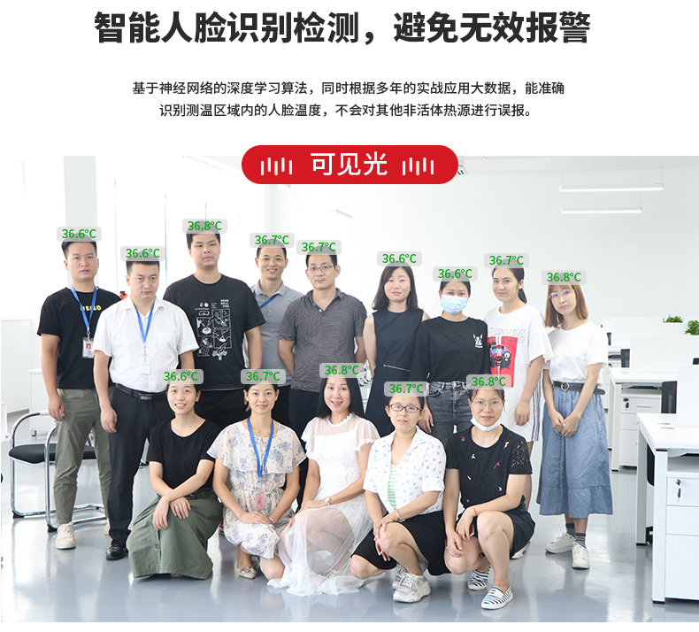 ·標(biāo)配黑體,實(shí)時(shí)溫度校正,測溫精度士0.3°℃·智能快速識(shí)別測溫,效率可達(dá)900人/分鐘·AI人臉識(shí)別,排除異常熱源干擾,誤報(bào)率更低20年非接觸紅外測溫研發(fā)經(jīng)驗(yàn),測溫更優(yōu)更準(zhǔn)確