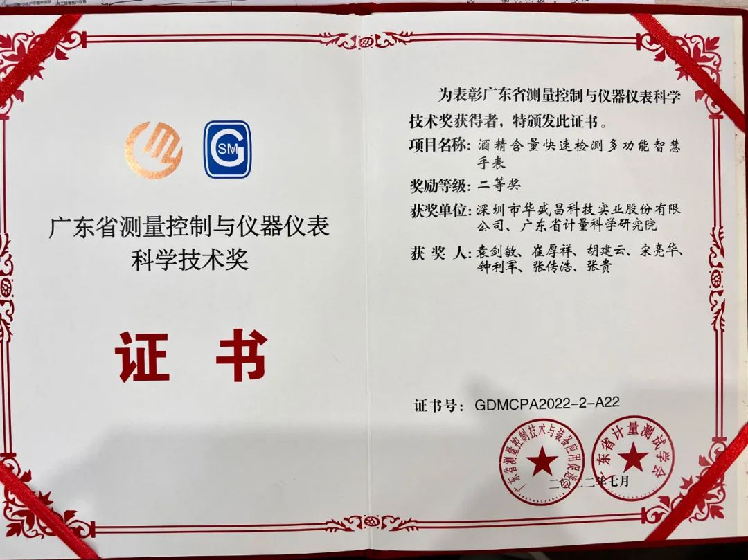 日前,深圳市華盛昌科技實業(yè)股份有限公司(簡稱CEM華盛昌,股票代碼:002980)科研項目“酒精含量快速檢測多功能智慧手表”榮獲2022年度廣東省測量控制與儀器儀表科學(xué)技術(shù)獎二等獎。