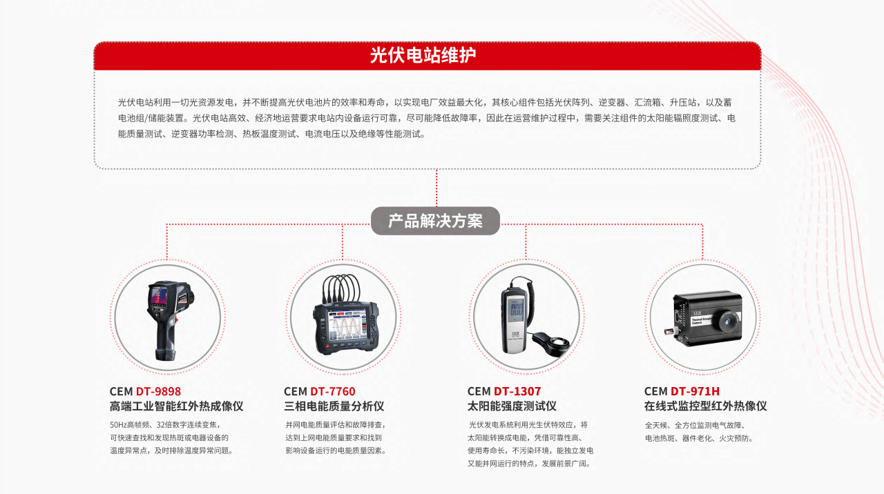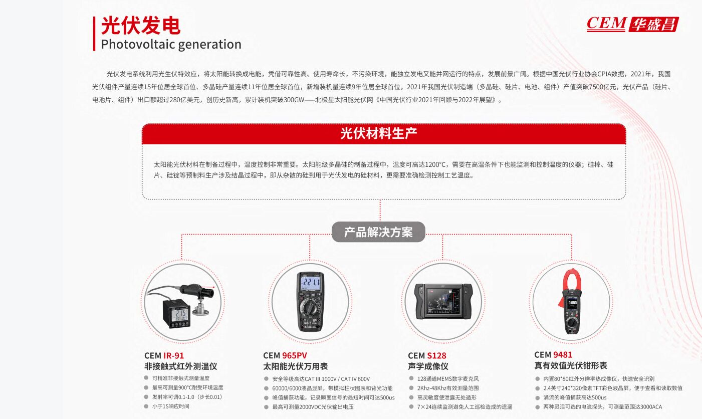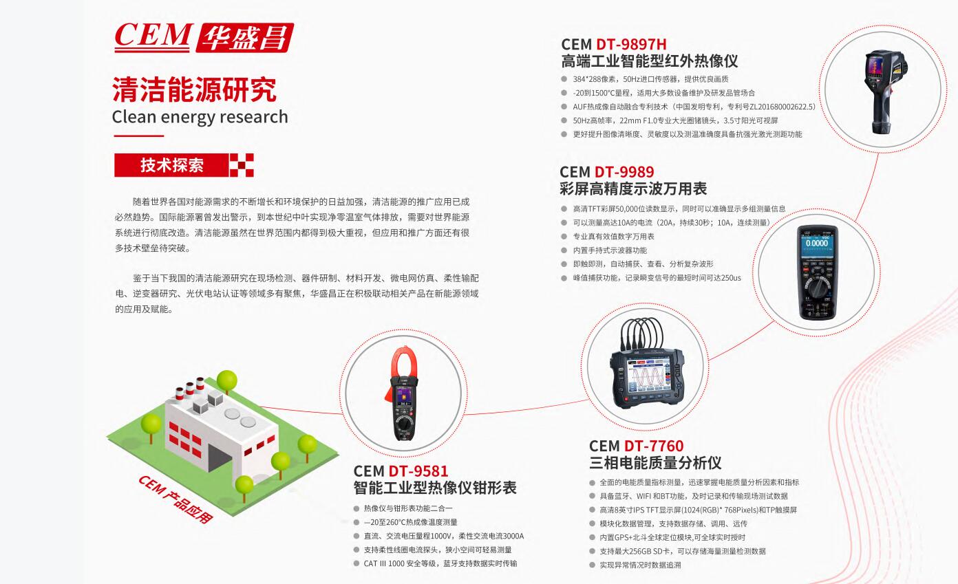 鑒于當(dāng)下我國的清潔能源研究在現(xiàn)場檢測、器件研制、材料開發(fā)、微電網(wǎng)仿真、柔性輸配電、逆變器研究、光伏電站認(rèn)證等領(lǐng)域多有聚焦,華盛昌正在積極聯(lián)動相關(guān)產(chǎn)品在新能源領(lǐng)域的應(yīng)用及賦能。